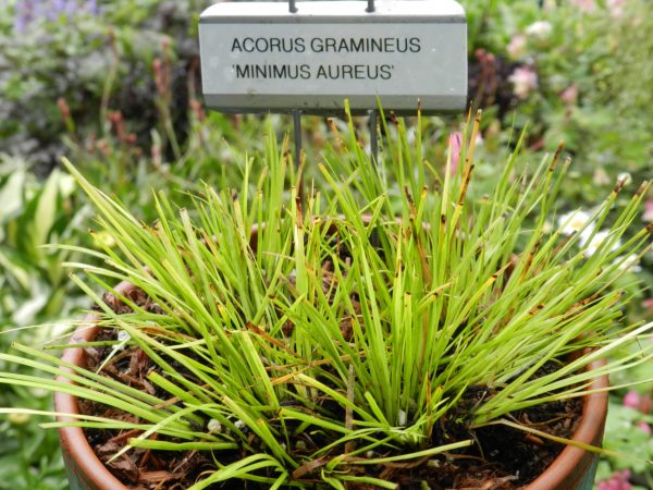 Voici une version naine des variété d’Acorus, originaire du Japon. Elle fait un joli tapis de feuille vert clair et or. Du mois de mai à juin de petites fleurs jaunes presque invisibles apparaîtront. Cette plante préfère les sols semi-humide et le plein soleil, bien qu’elle aime bien passer ses après-midi à l’ombre lors des grandes chaleurs. Elle tolère pas très longtemps les sols plus secs et vous le verrez à la réaction de ses feuilles. Seulement 4 pouce de haut, elle pousse lentement en rhizome et dégage une odeur de citron lorsqu’elle est coupé. Elle est idéal dans les milieux humides, rocailleux, entre les dalles et sur le bord des jardins d’eau.