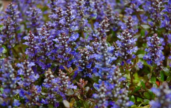 Introduction 2016. Ce couvre-sol forme rapidement un tapis de petites feuilles arrondies de couleur rouge-acajou et vert- bronze. Compact et vigoureux, il produit une multitude de petites fleurs bleu-violet. Utilisé pour massif, bordure, boisé.
