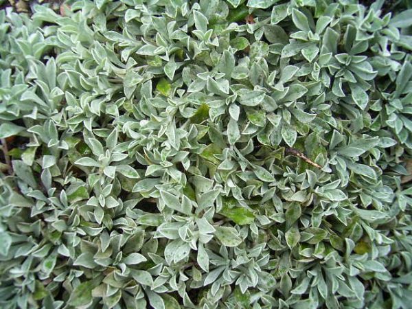 Feuilles argentées des 2 côtés. L’espèce la plus compacte. Feuilles entières, spatulées.