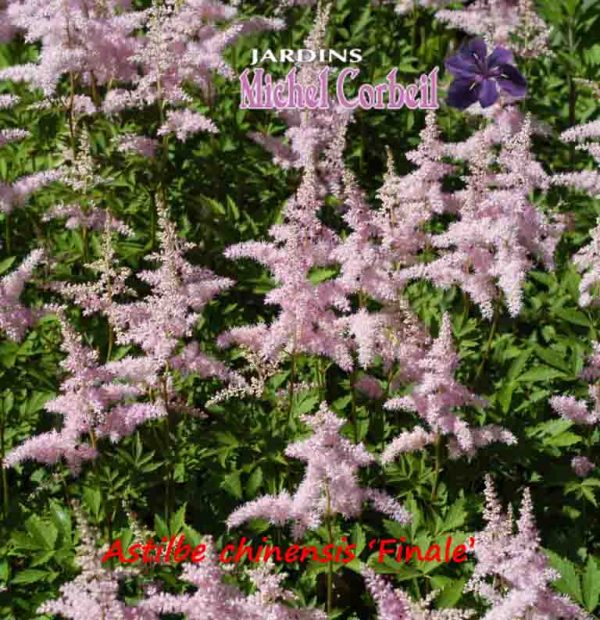 Introduction 2014. L’Astilbe chinensis offre une excellente tolérance à l’ombre et à la sécheresse si on le compare avec les autres espèces et cultivars. La plante s’étend par des rhizomes rampants pour produire de nouveaux plants, ce qui en fait une espèce intéressante comme couvre-sol. Le cultivar ‘Finale’ présente des hampes florales de 30 à 45 cm de hauteur; les panicules de fleurs roses s’épanouissent à la mi ou fin juillet et se maintiennent en août. Le plant s’étale sur 40 à 50 et plus avec le temps. Le feuillage n’est pas brouté par les chevreuils.