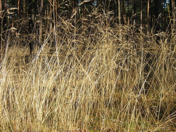 C’est une plante assez commune sur les sols siliceux, dans les bois, les prairies ou sur les talus humides. Les feuilles sont étroites et enroulées sur les bords. La ligule est courte. Les épillets sont argentés, panachés de violet.