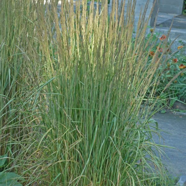 Même port que le célèbre Calamagrostis ‘Karl Foerster’ mais avec une bande blanche et centrale sur chaque feuille. Feuillage inversé de C. ‘Overdam’. Inflorescence droite et plumeaux vert pourpre qui tourneront au doré plus tard en saison.