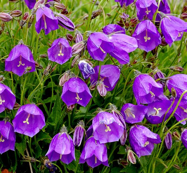 Introduction 2014. Le cultivar ‘Jelly Bells’ est une mutation de Campanula x pulloides ‘G.F. Wilson’; cet hybride présente une certaine ressemblance avec notre campanule à feuilles rondes (Campanula rotundifolia). C’est un plant compact, de 20 à 25 cm de hauteur s’étalant sur 25 à 35 cm. Les fleurs, en forme de clochette, à la corolle violette, s’épanouissent au sommet d’une courte hampe florale. La floraison débute à la mi juin et se prolonge jusqu’à la mi juillet. La plante demande un emplacement ensoleillé dans une terre meuble, ordinaire et bien drainée. Le feuillage est boudé par les chevreuils.