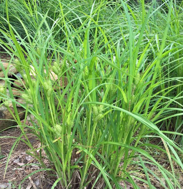 | Variété vigoureuse, elle forme un monticule de feuilles linéaires vertes à bord effilé et pointes retombantes. Elle produit des épillets remplis de minuscules fleurs. |