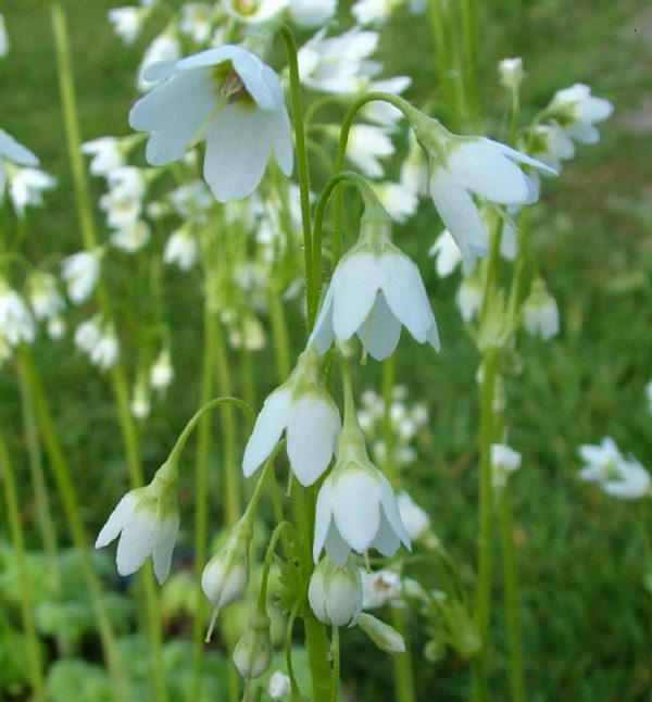 Fleur blanche en petite clochette. Attire les oiseaux-mouches.