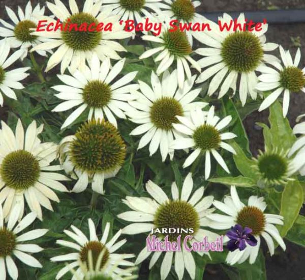 Le cultivar ‘Baby Swan White’ est une lignée fertile sélectionnée, aux capitules assez semblables à l’Echinacea purpurea ‘White Swan’, mais qui présente un port nettement plus compact dont les tiges feuillées ne dépassent pas 40 à 50 cm de hauteur. Le plant s’étale sur 35 à 40 cm. Les capitules au centre vert foncé sont entourés de rayons (ligules) blanc pur. Il fleurit du début de juillet jusqu’à la mi septembre et refleurit quelquefois en octobre.
