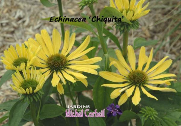 Introduction 2014. Le cultivar ‘Chiquita’ est une introduction de la firme Terra Nova Nurseries, inc. de la série «Prairie Pixies»; celle-ci se caractérise par des plants plus compacts ne s’élevant guère à plus de de 40 cm de hauteur. Ceux-ci sont précieux pour la devanture de petites ou de grandes plates-bandes ou la culture en contenants. Le cultivar ‘Chiquita’ porte des capitules aux ligules d’un jaune «banane» à l’épanouissement et vieillissant vers un jaune un peu plus pâle. La floraison est prolongée; elle débute en juillet et les capitules se renouvellent jusqu’à la mi septembre.
