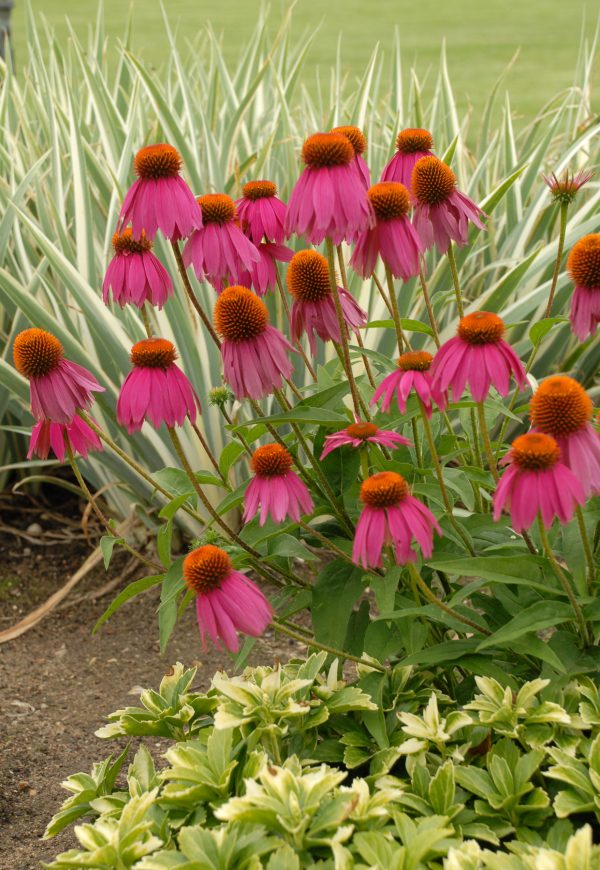 Cette échinacée nain fournit impact de la couleur impressionnante dans le paysage. Des grands et riches fleurs rose magenta ajoutent un coup de poing pour la couleur, sont un spectacle à voir quand ils sont plantés en massive dans le paysage. Échinacées sont un pilier dans le jardin d’aujourd’hui. Toutefois, certains fleurs fanées doivent être laissés sur les plantes à l’automne parce que leurs graines fournissent de la nourriture d’hiver pour les pinsons et autres oiseaux. La graine séchée dirige également un intérêt architectural à l’hiver.