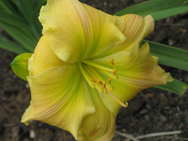 Grosse fleur jaune brillant, gorge verte.