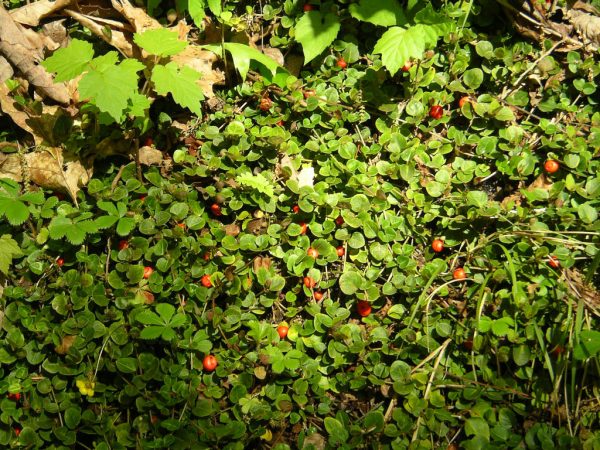Rampante au feuillage persistant vert très foncé. À cultiver dans les endroits ombragés et frais, plus particulièrement à l’ombre de grands conifères. Croissance lente; il faut lui laisser le temps de s’établir pleinement. Une belle espèce pour le jardin d’ombre. Fleur blache.