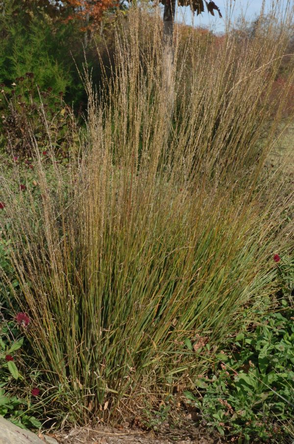 Variété compacte au port dressé. Petits épillets pourpre foncé presque noir, sur des tiges de 50-60cm érigées qui apportent de la verticalité au jardin. Très joli en isolé. Coloration automnale du feuillage jaune doré.