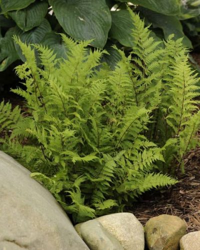 Fougère à feuilles caduques, aux frondes vert pâle. Elle produit des sporanges d’abord noirâtres, puis jaune-vert et enfin brun rouille, le long des tiges des feuilles fertiles.