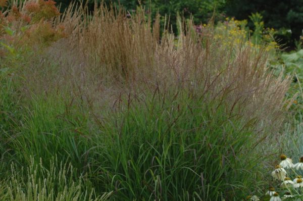 Panicules ayant la plus belle coloration estivale et automnale.  Feuillage vert avec extrémités rouge bourgogne très colorées dès le début juin, contrairement à P. ‘Squaw’ qui demeure vert durant tout l’été.  Les feuilles se couvrent complètement de bourgogne à l’automne.  L’inflorescence est composée de panicules aériens et nuageux de fleurs rouge rosé (120cn/ 48 »).