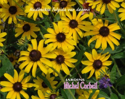 La rudbeckie orangée (Rudbeckia fulgida) est l’une des plantes vivaces les plus utilisées dans nos aménagements. Très rustique (zone 3), facile de culture et à longue floraison, peu affectée par les maladies et les ravageurs, cette espèce a également quelques sous-espèces et cultivars intéressants. La Rudbeckia fulgida var. deamii est un plant plus petit, aux feuilles un peu plus étroites et dentées. Les tiges feuillées portant les capitules, de 7,5 cm de diamètre, aux rayons jaune teinté d’orange, mesurent 60 à 70 cm de hauteur; le plant s’étale sur 40 à 50 cm. La floraison débute en juillet et se prolonge jusqu’au début ou à la mi septembre.