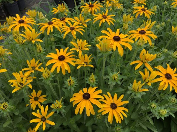 Vivace qui produit de nombreuses fleurs jaune vif en forme de marguerite avec un cœur conique brun foncé. Feuillage vert linéaire, tiges dressées. Taillez les fleurs fanées pour entourer la floraison continue. S’ils sont laissés à l’automne, les cônes servent de nourriture aux oiseaux en hiver. Résistant aux fongicides (spot de Septoria).