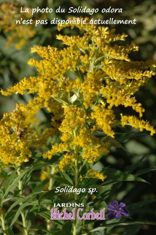 Généralités – Le genre Solidago compte une centaine d’espèces de plantes herbacées vivaces que l’on appelle populairement des verges d’or; elles sont toutes originaires de l’Amérique du Nord. Ces espèces fleurissent entre le début d’août et le début d’octobre. Les petits capitules, aux rayons jaunes, sont groupées, selon les espèces, en panicules, racèmes ou corymbes. Leurs inflorescences généreuses et la couleur vive de celles-ci sont d’un bel effet au jardin.