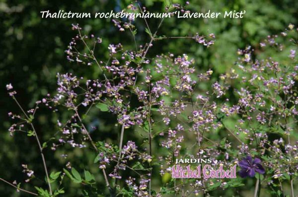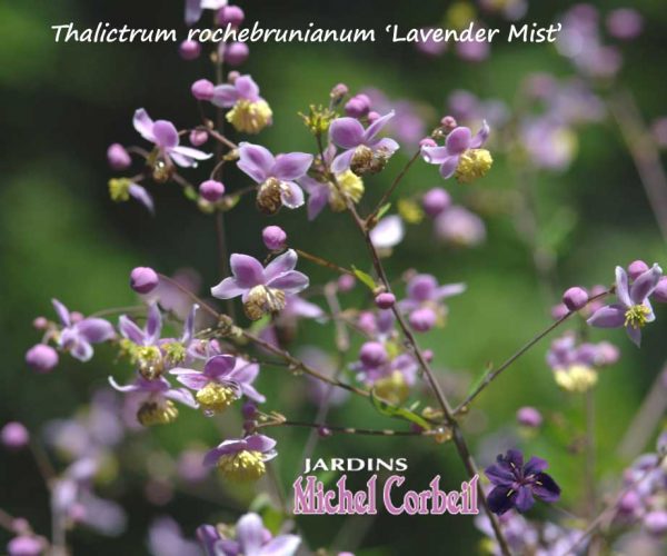 Généralités – Le genre Thalictrum compterait, selon différents auteurs, entre 120 et 200 espèces différentes. Dans les jardins, nous pouvons trouver une quinzaine d’espèces intéressantes. Notre flore indigène accueille le pigamon dioïque (Thalictrum dioicum), le pigamon de la frontière (T. confine) et le pigamon pubescent (T. pubescens). Ils peuvent faire l’objet d’une naturalisation dans notre aménagement et même être introduits dans nos plates-bandes. Les fleurs des pigamons sont de deux types, celles avec quatre sépales et un groupe d’étamines au centre, et les asépales, qui ne portent qu’une masse d’étamines et pas de sépales. Les fleurs asépales sont généralement dressées alors que celles qui ont des sépales sont pendantes. Le feuillage des pigamons donne une texture différente dans les associations de vivaces car les feuilles composées de nombreuses folioles découpées ressemblent vaguement à celles de certaines fougère (notamment les capillaires).