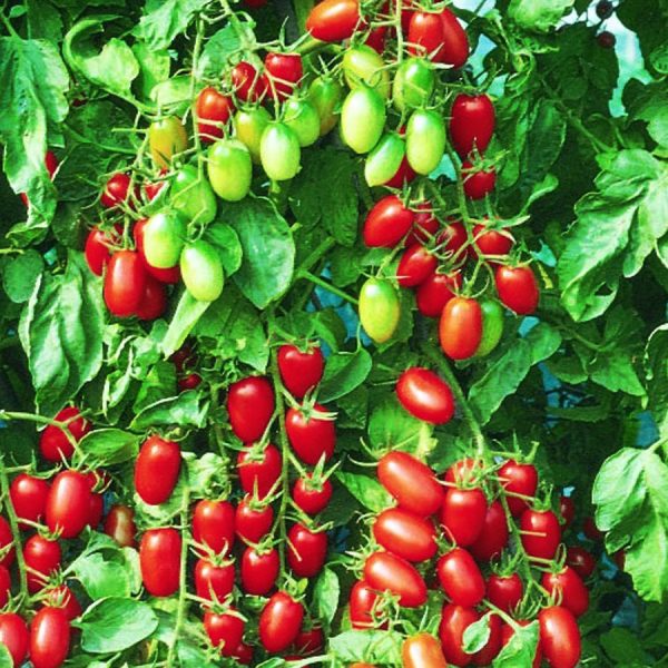 Fruit rouge, très foncé et luisant, tolérant au fendillement. La plus grosse des tomates de ce type, dont la taille se situe entre un gros raisin et une prune.