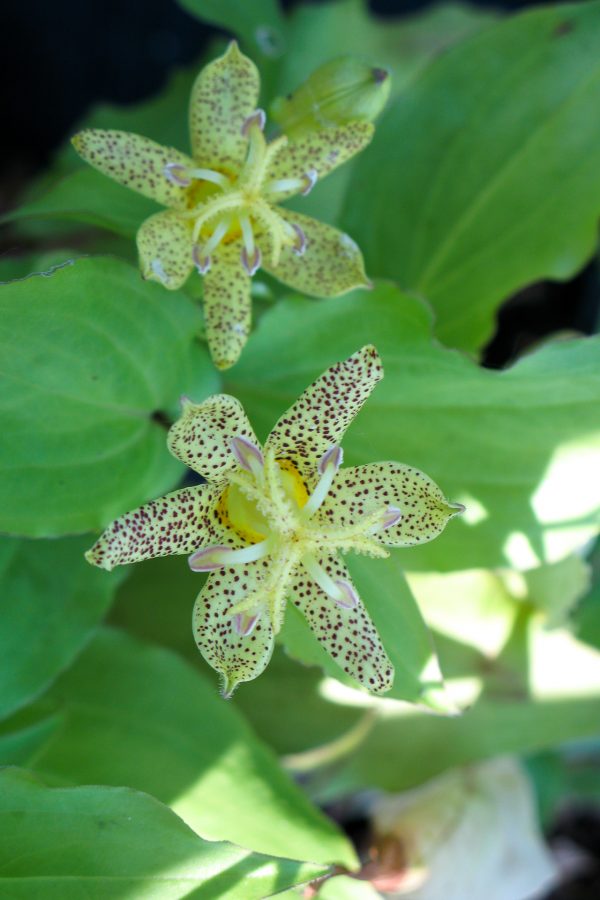 Originaire du Japon, ce Tricyrtis à larges fleurs jaunes tachetées de brun possède un feuillage vert pâle également tacheté. Espèce la plus hâtive à fleurir!